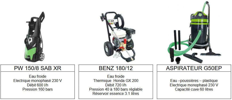 Nous disposons également d’autres équipements spécifiques. Sur simple demande, nous pouvons vous envoyer notre catalogue complet.